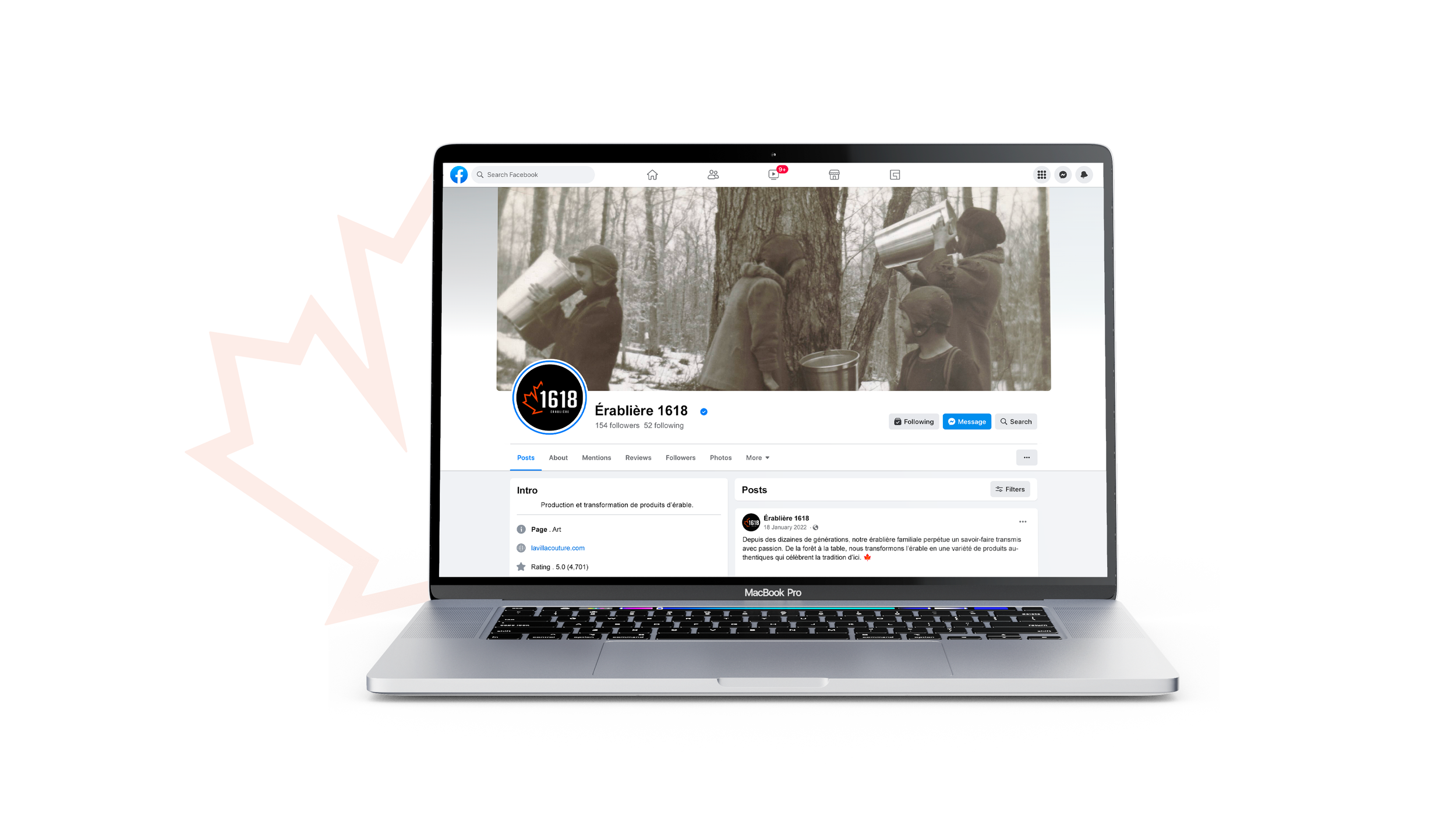 Ce projet est une image de marque pour l’Érablière 1618, une nouvelle entreprise familiale d’érablière, ancrée dans plusieurs générations. L’objectif était de développer un logo simple, moderne et distinctif, en revisitant la feuille d’érable de manière originale afin de se démarquer des autres identités dans le domaine. Les couleurs ont été pensées pour évoquer un côté chaleureux et authentique, en lien avec son histoire familiale.